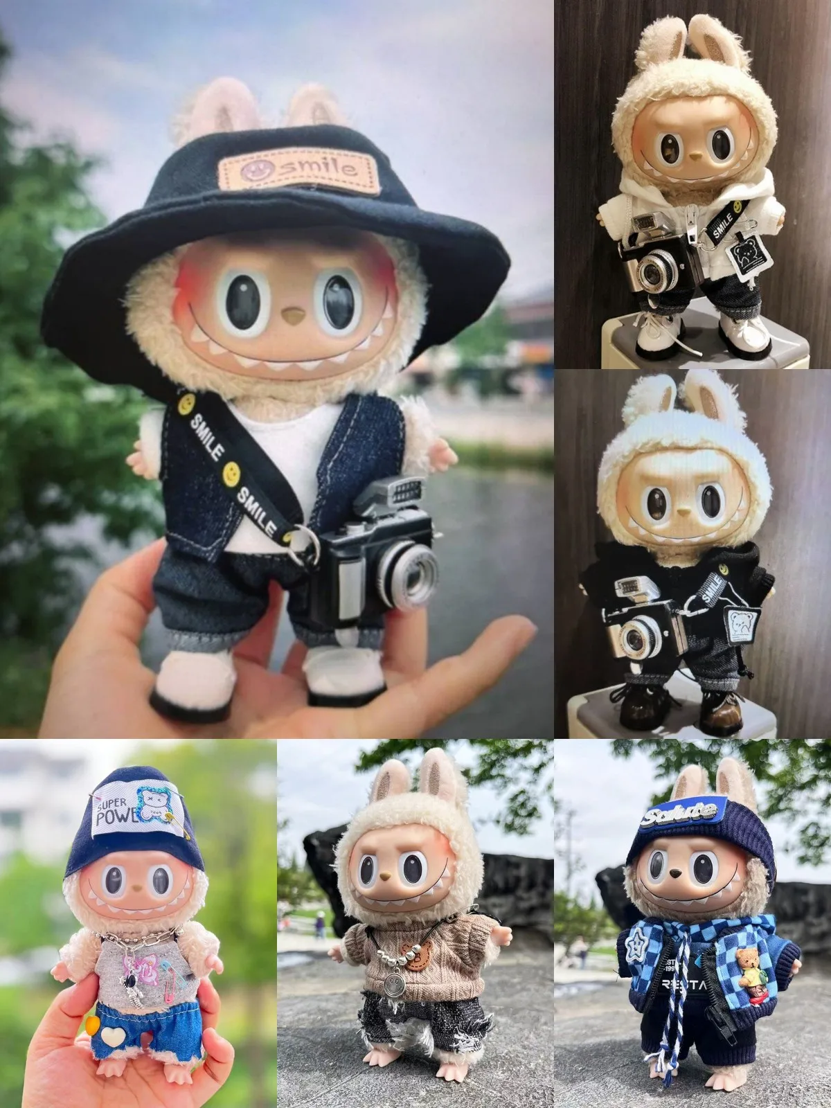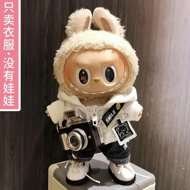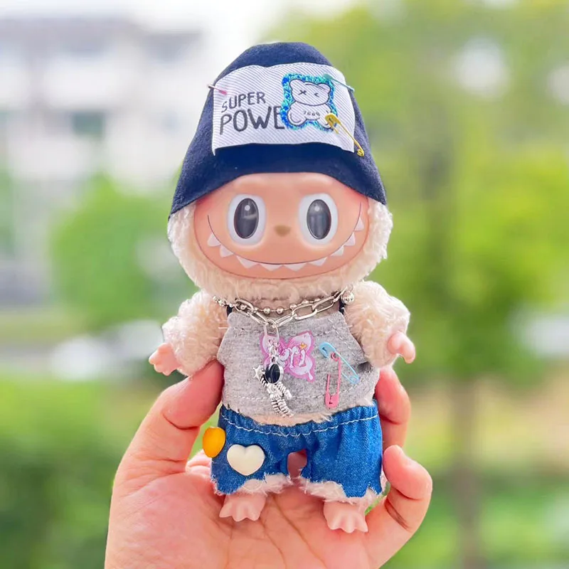 17Cm Cute Mini Labubu Clothes Plush Hoodie Idol Dolls Jumpsuit Clothing Fans Overalls No Doll Accessories for Korea Kpop Exo